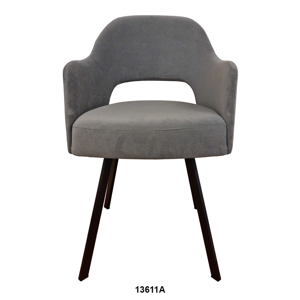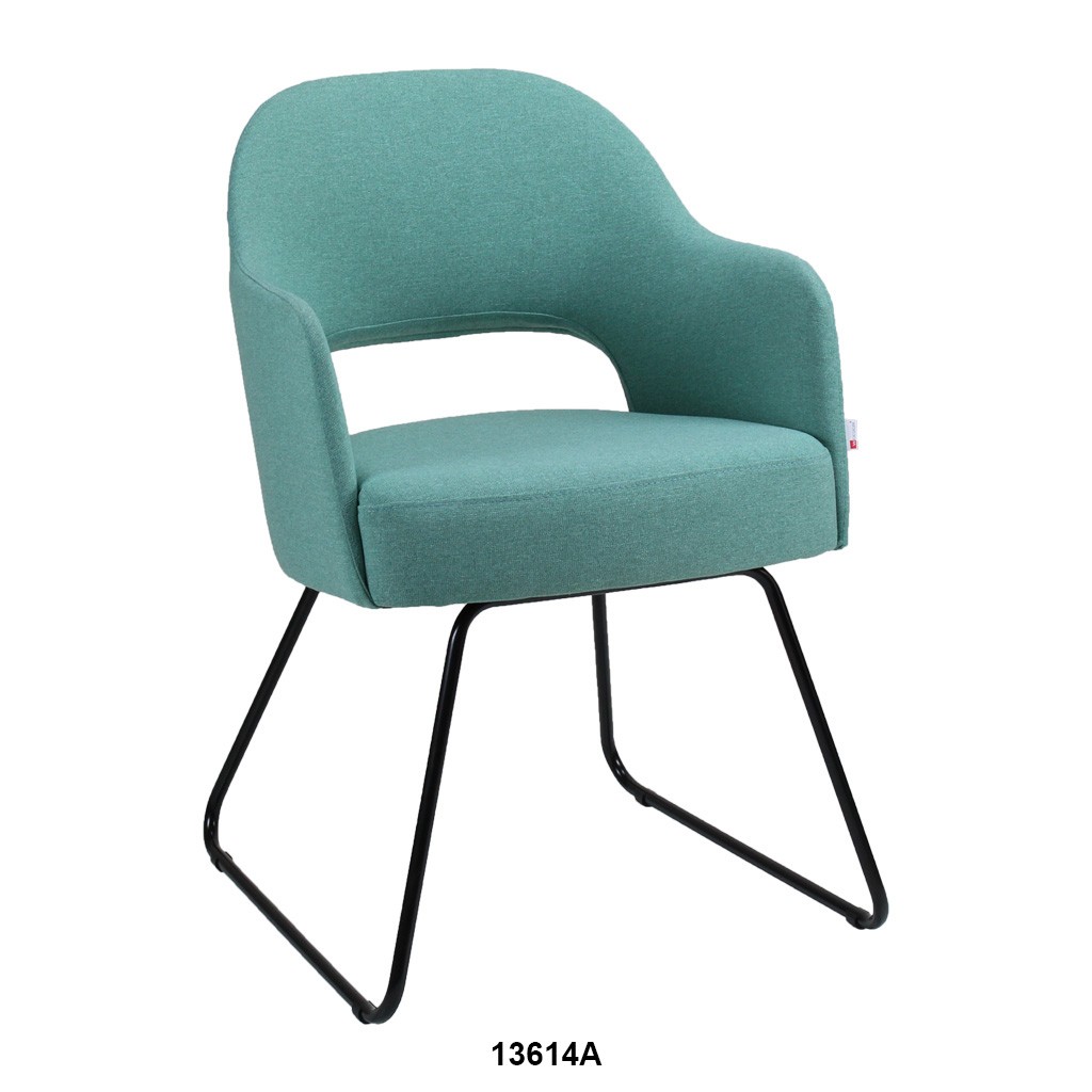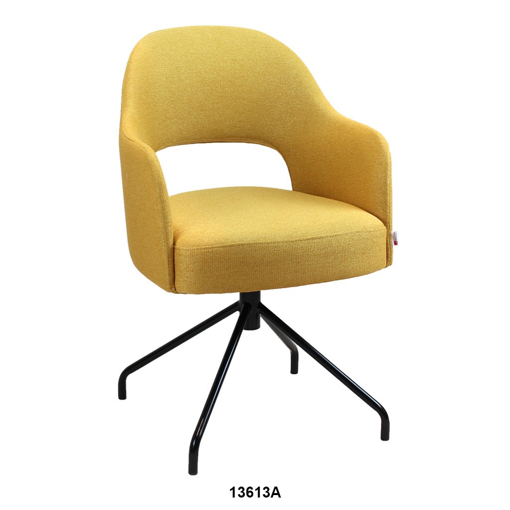 Vollpolsterstuhl mit durchgehend verbundener Rücken- und Armlehne.